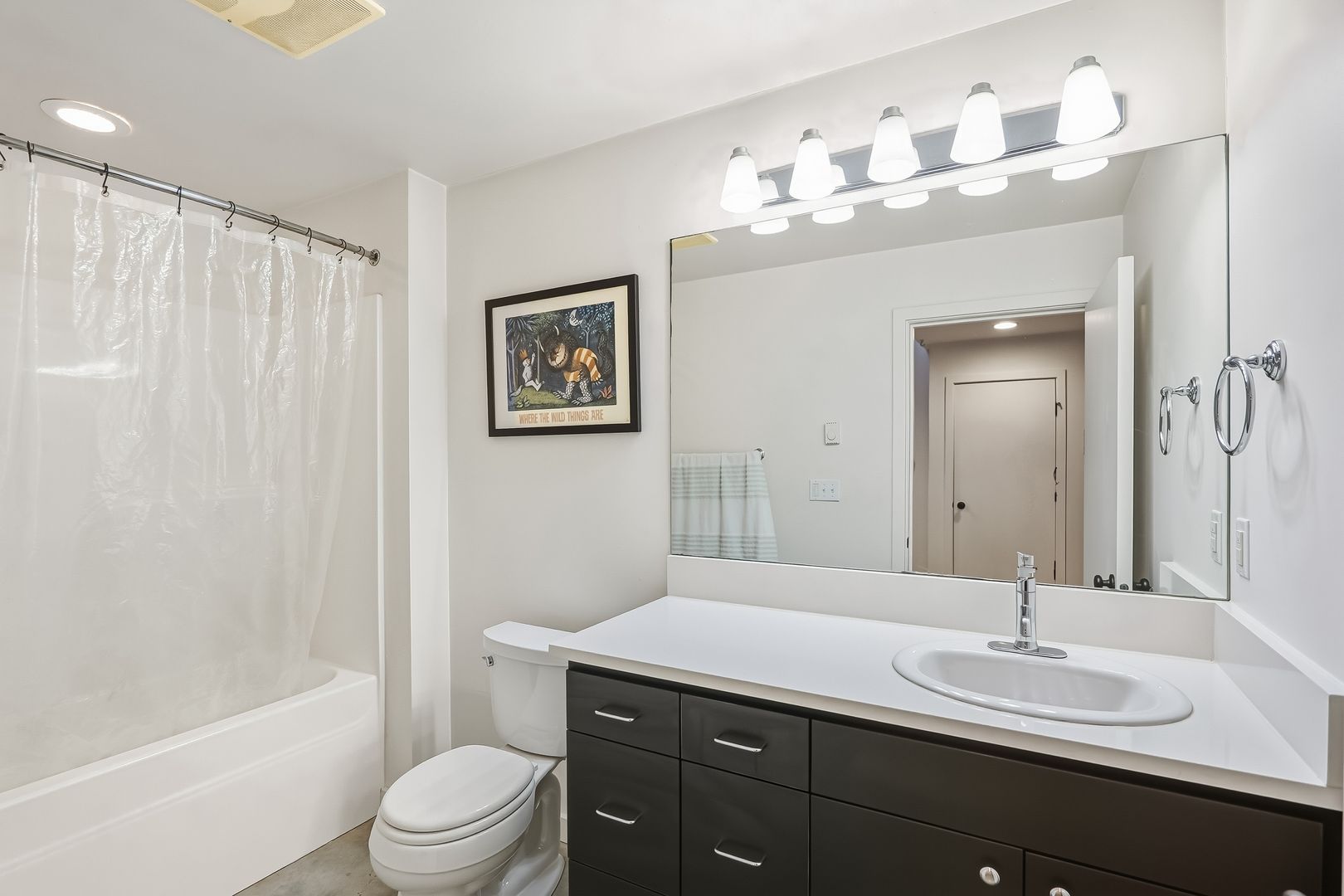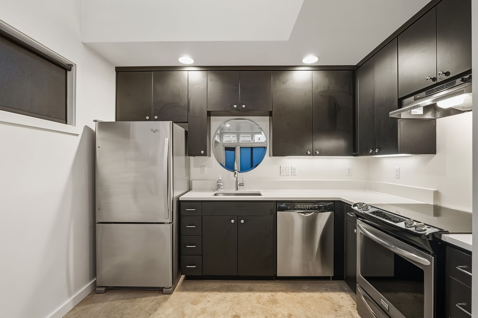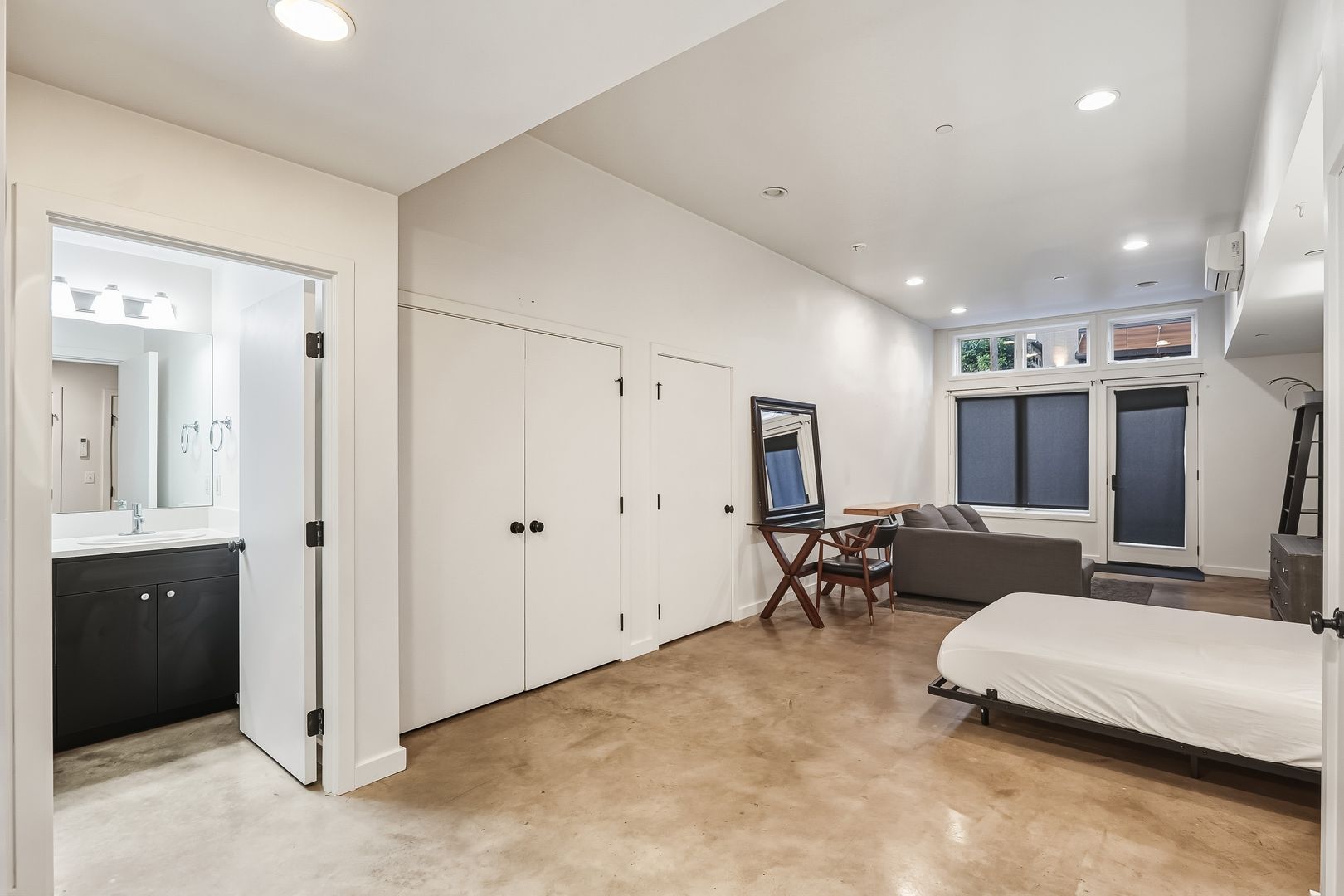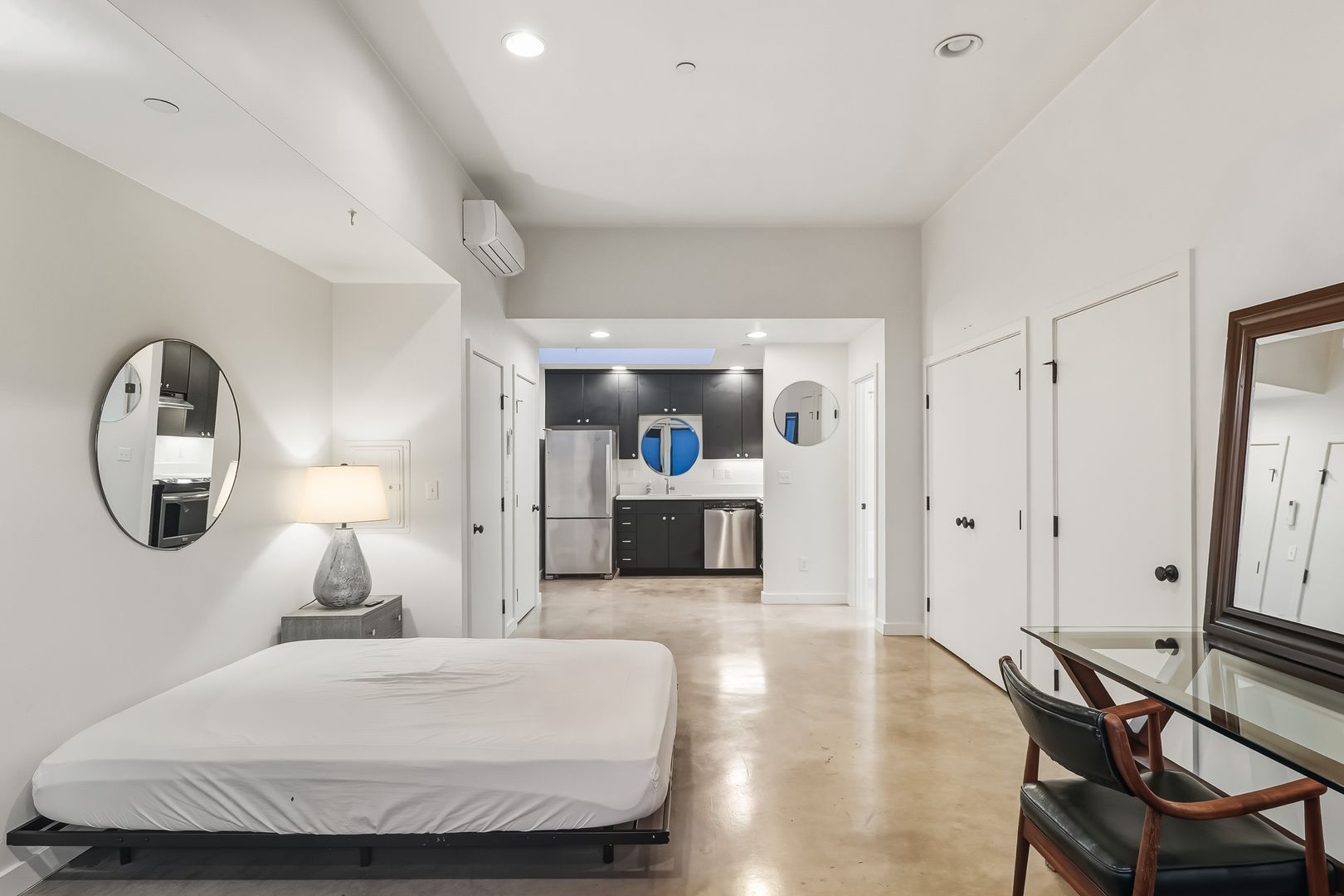 Inside, you’ll find sleek concrete floors, energy-efficient heating and cooling, and an open layout designed for easy living. The stainless steel appliances add a high-end touch to the kitchen, while the in-unit washer and dryer deliver everyday convenience. Thoughtfully furnished pieces help create a move-in-ready experience without sacrificing your personal style.